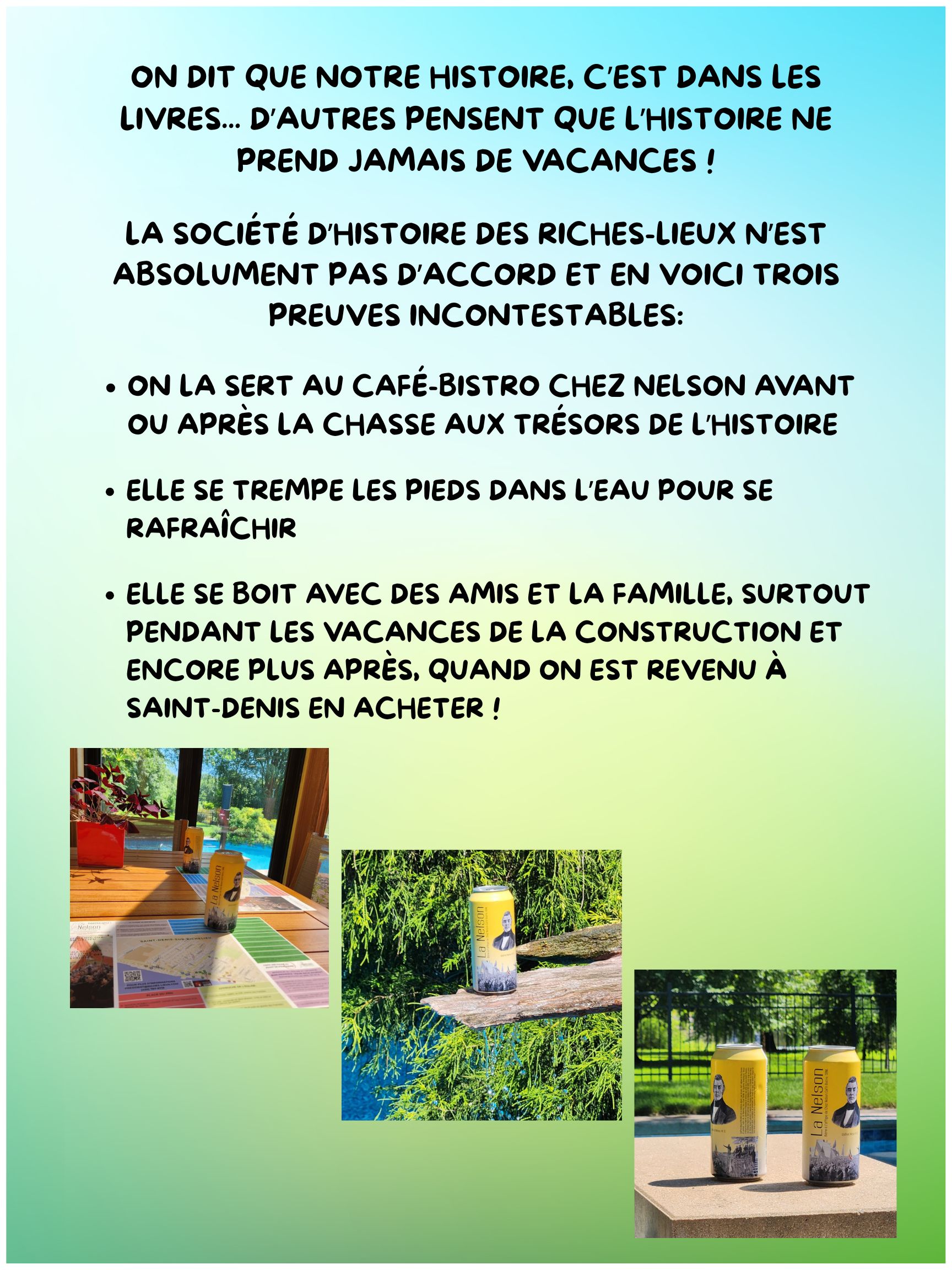 D’ici là, Septembre est le mois idéal pour partir à la Chasse aux trésors de l’histoire avec nos napperons-guides que vous pouvez trouver au Café-Bistro Chez Nelson, à Saint-Denis et au Resto-Bar Entourage à Saint-Charles, ainsi que dans les bureaux des mairies des deux municipalités.