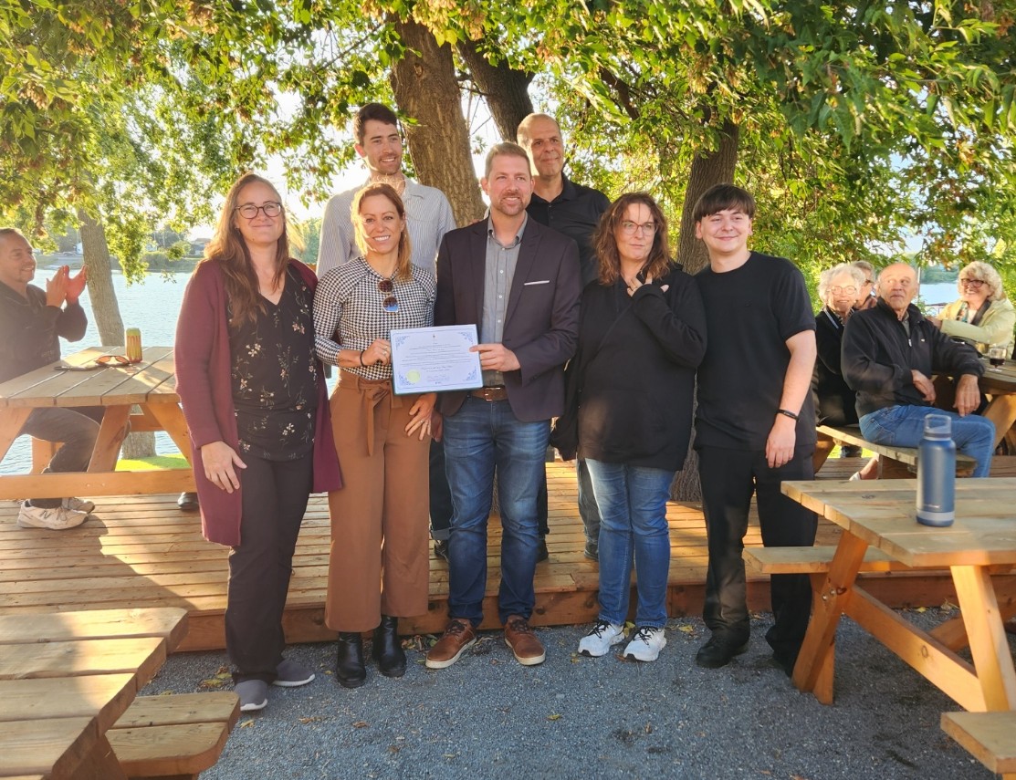 Le conseil d’administration, dont notre illustre archiviste et ex-fondateur de la SHRL Onil Perrier, le président de la Société depuis 10 ans, Guy Archambault, et François St-Louis, notre trésorier, a accueilli chaleureusement le député du Bloc québécois Xavier Barsalou-Duval et la petite Malbaie et l’attaché politique du chef Yves-François Blanchet, Christian Picard. Plusieurs amis de la Grande Histoire qui s’est jouée chez nous étaient aussi présents.